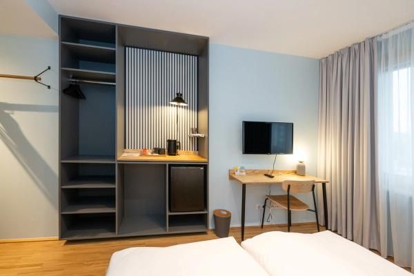 Das lässig-moderne Design. Ein extrabequemes Bett, Flatscreen-TV, kostenloses WLAN und ein kleiner Schreibtisch. Der Wasserkocher incl. Tee und Löskaffee sowie die Aussicht in die grüne "Freie Mitte" sind das Tüpfelchen auf dem i. Eben alles, um es richtig gemütlich zu haben, ist für uns selbstverständlich.